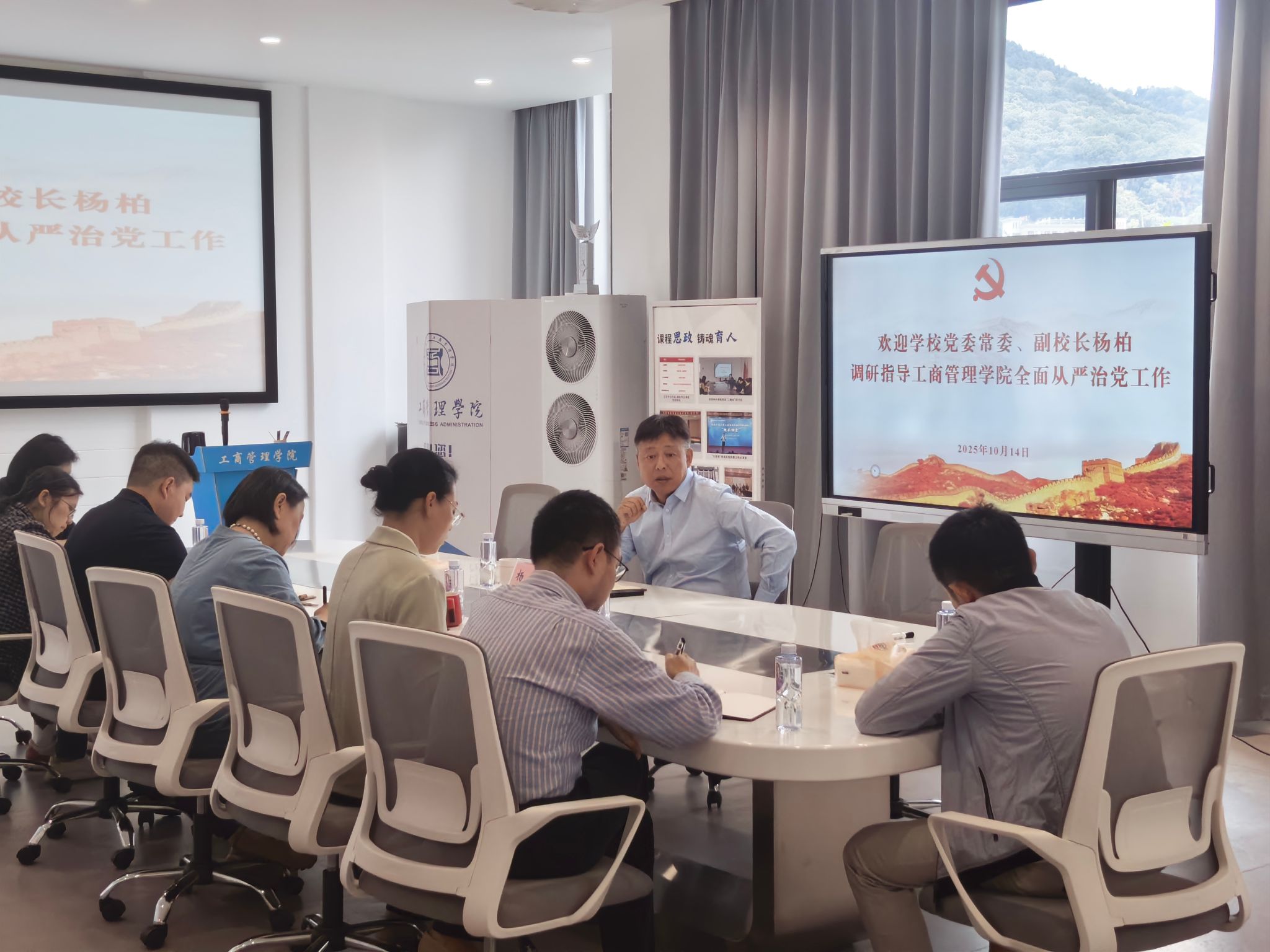 为推进全面从严治党向纵深发展、压紧管党治党政治责任,持续推进全面从严治党。10月14日下午,学校党委常委、副校长杨柏到工商管理学院调研指导全面从严治党工作,工商管理学院全体领导班子、系部主任、科级干部、MBA教育中心负责人参加了会议。