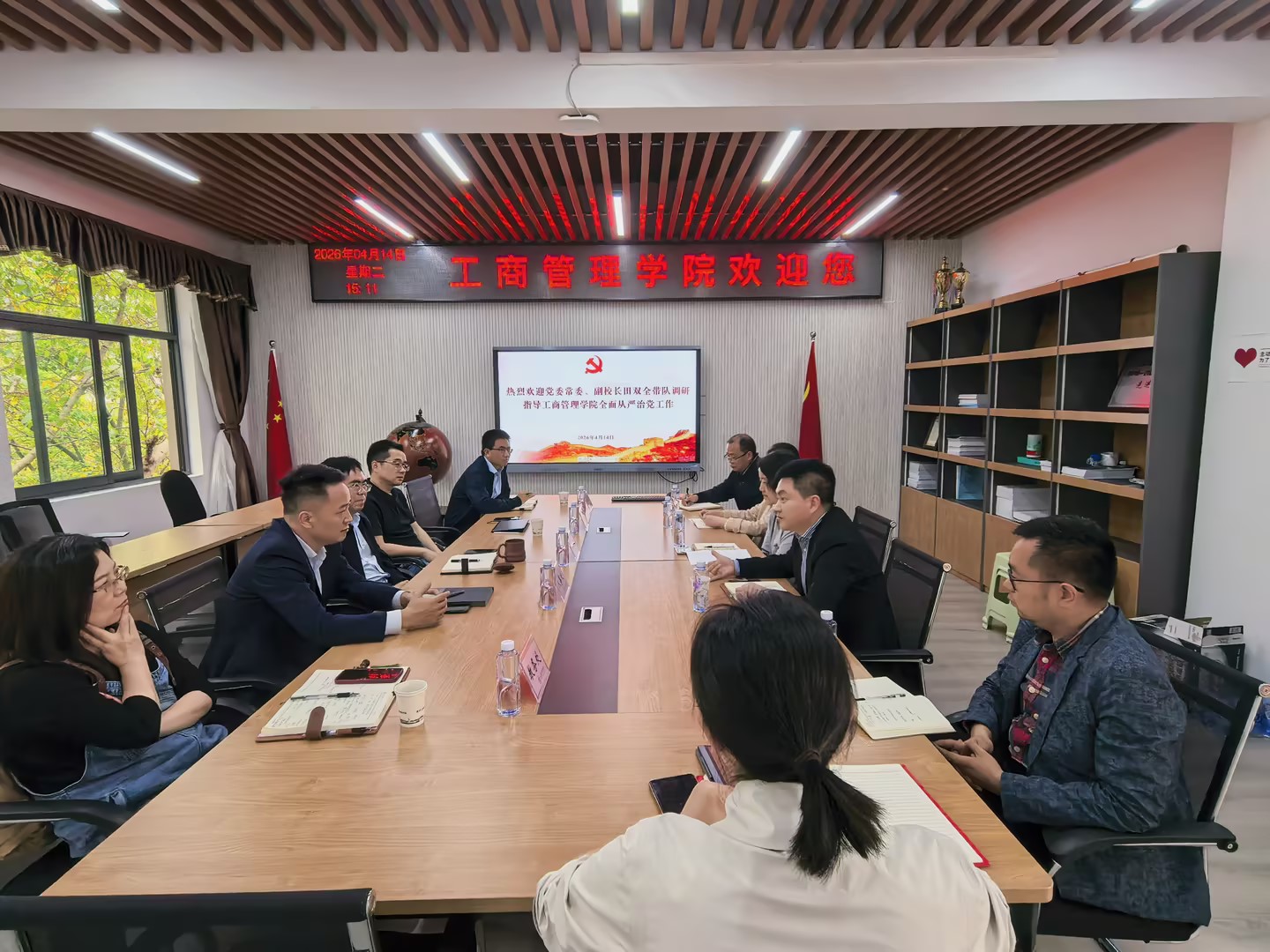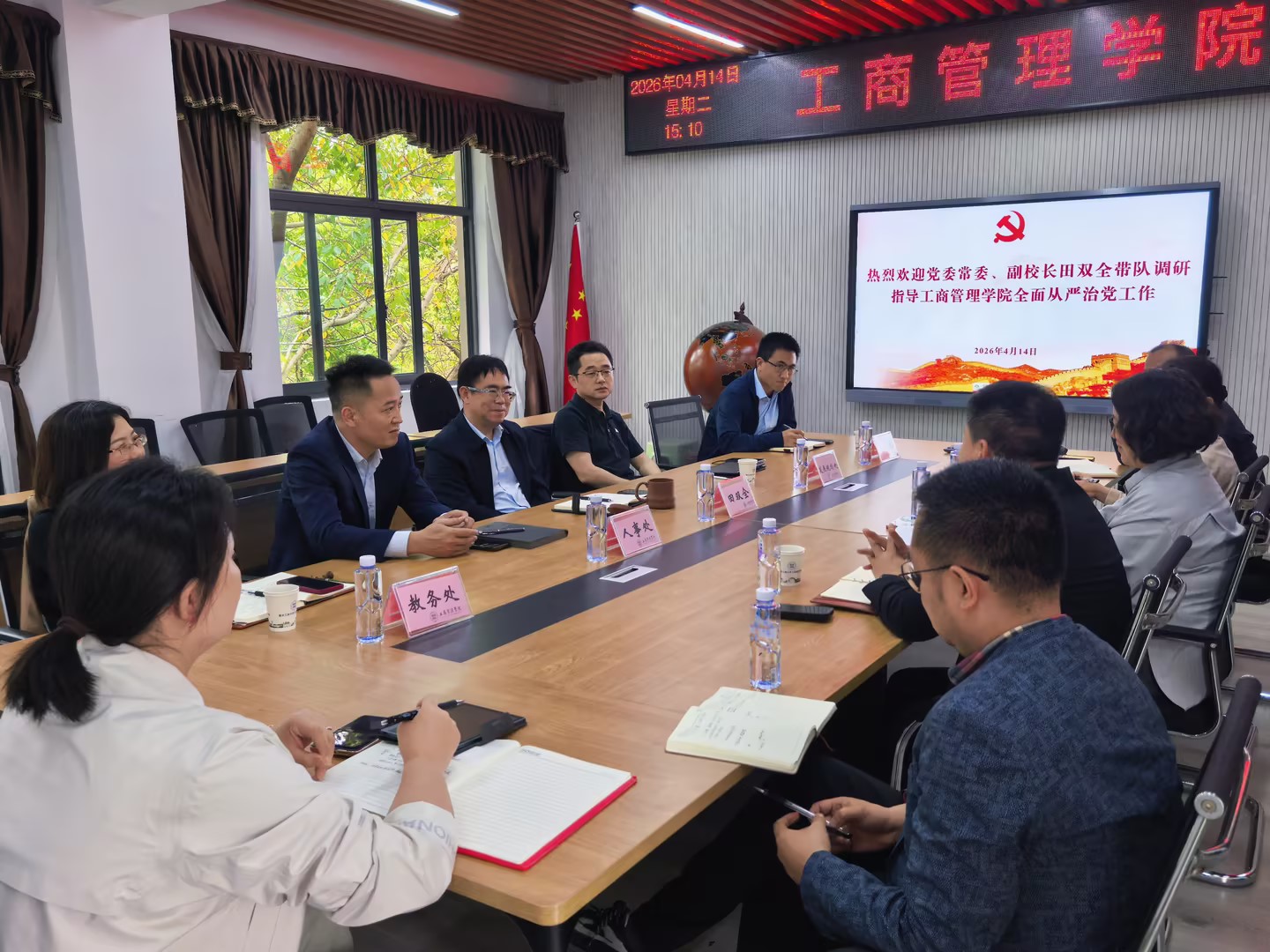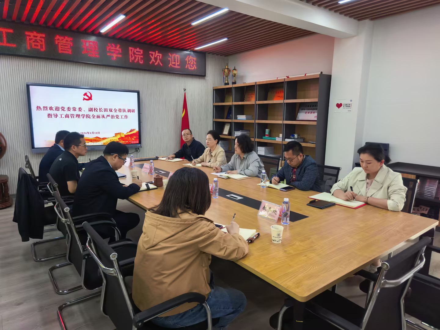 4月14日下午,校党委常委、副校长田双全带队到工商管理学院调研指导全面从严治党工作,发展规划处、人事处、科研处、教务处负责人陪同调研,工商管理学院领导班子全体成员、综合办公室主任参加调研座谈会。