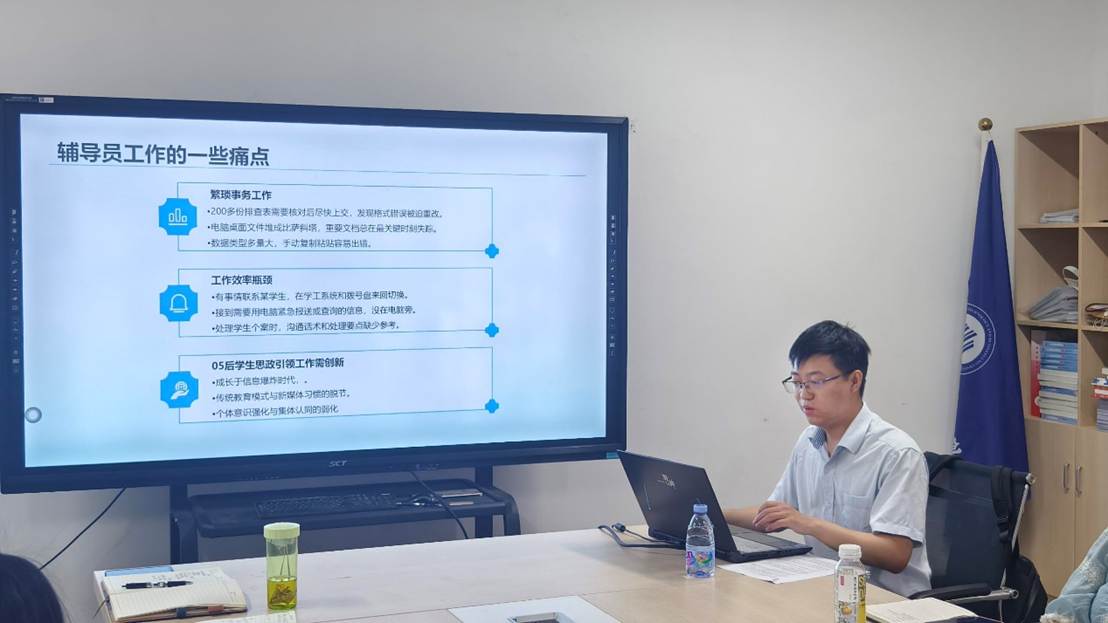 5月19日上午,工商管理学院学工部举办 “数智赋能思政教育” 研讨交流会,特别邀请人工智能学院张鑫老师开展AI应用培训。学院党委副书记程亚及全体辅导员参会,通过案例分享、互动实操与深度研讨,共同探索AI技术与学生工作的融合路径。