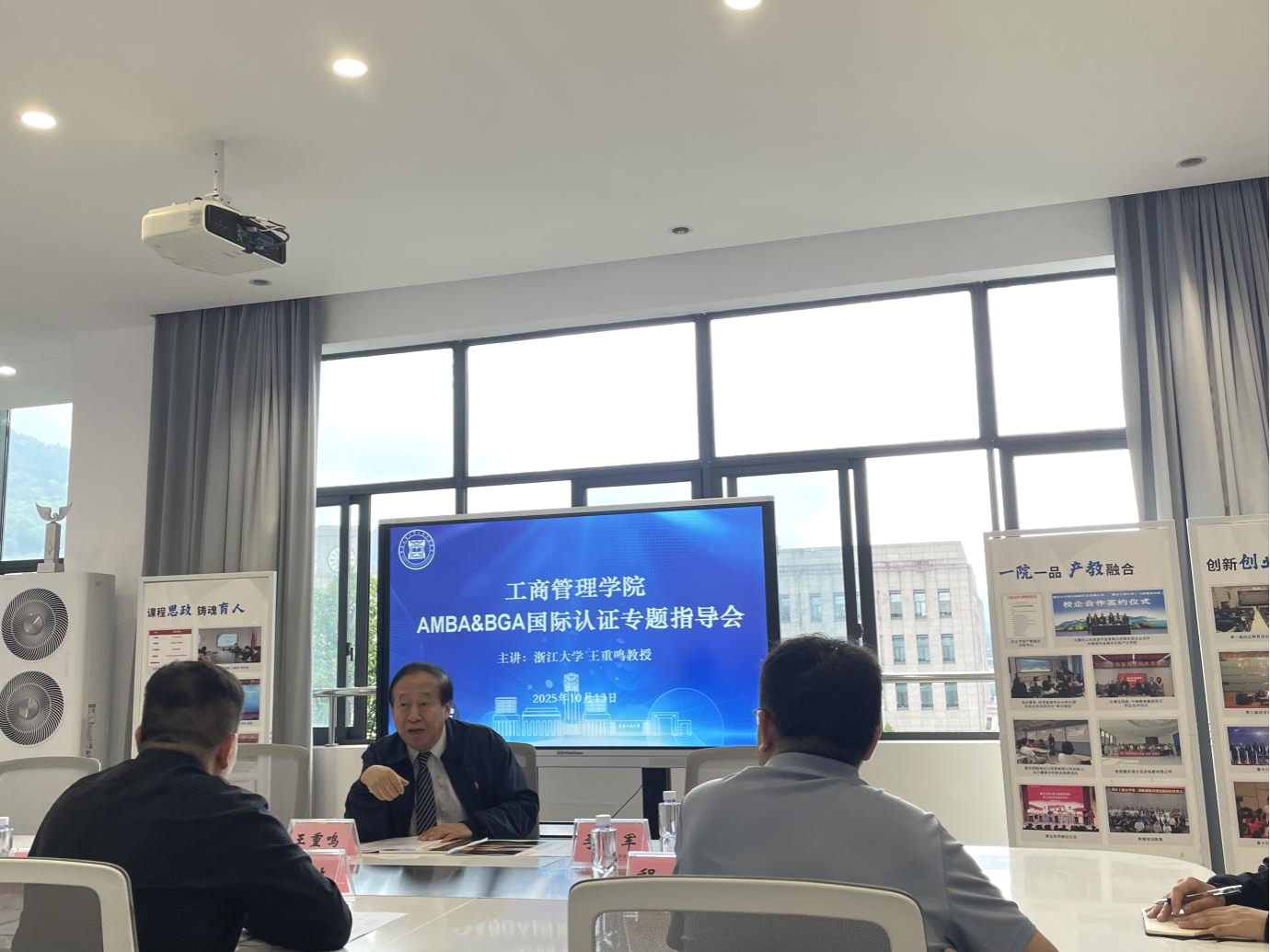 2025年10月13日下午,浙江大学资深教授、AMBA&BGA国际认证中国区总协调人王重鸣受邀莅临我院,针对学院AMBA&BGA国际认证准备工作开展专项指导。学院党委书记陈亚惠、院长陈伟、党委副书记程亚、副院长熊艾伦以及全体系主任共同参与了本次会议。