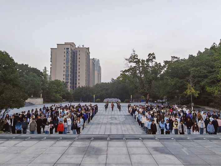 为厚植学生爱国情怀,激发师生奋进力量,2025年11月4日,重庆工商大学工商管理学院组织学生于含弘广场参与了一场庄重且意义非凡的升旗仪式,以饱满的精神状态开启新一周的奋斗篇章。出席本次升旗仪式的有工商管理学院分团委书记、学工办主任谭予涵,学生会指导老师边子华,主持人为杜天。