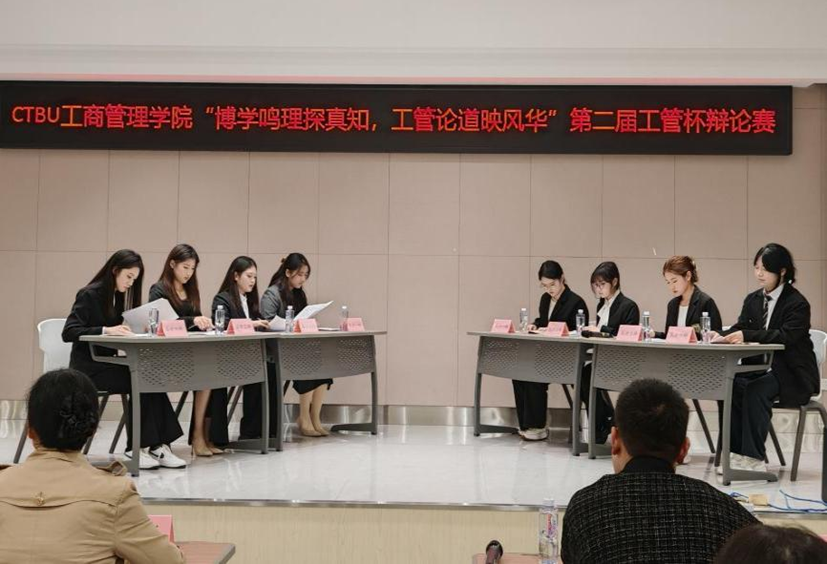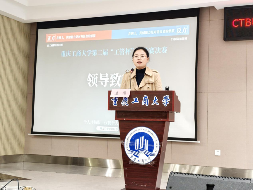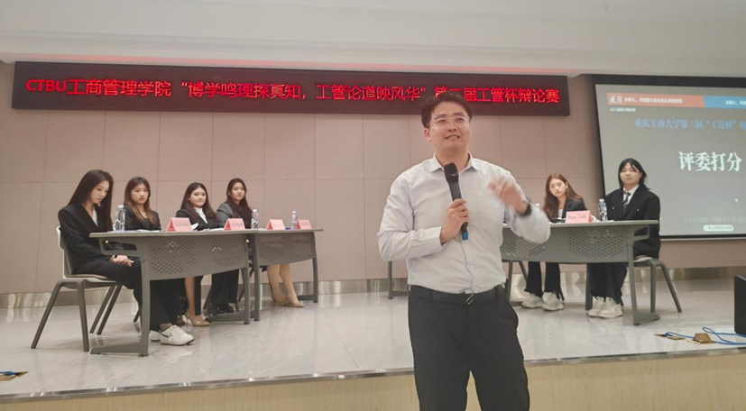2025年11月14日,工商管理学院第二届“工管杯”辩论赛决赛在学生事务中心B101会议室精彩上演。学院党委副书记程亚、学工办主任谭予涵、学生会指导老师边子华莅临现场指导,重庆工商大学校辩论队队长刘星宇、陈林楚涵及校辩论队成员徐梓艺组成专业评委团,共同见证这场思辨盛宴。