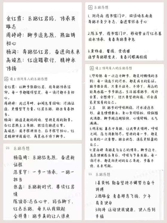 同学们分享乐跑感想