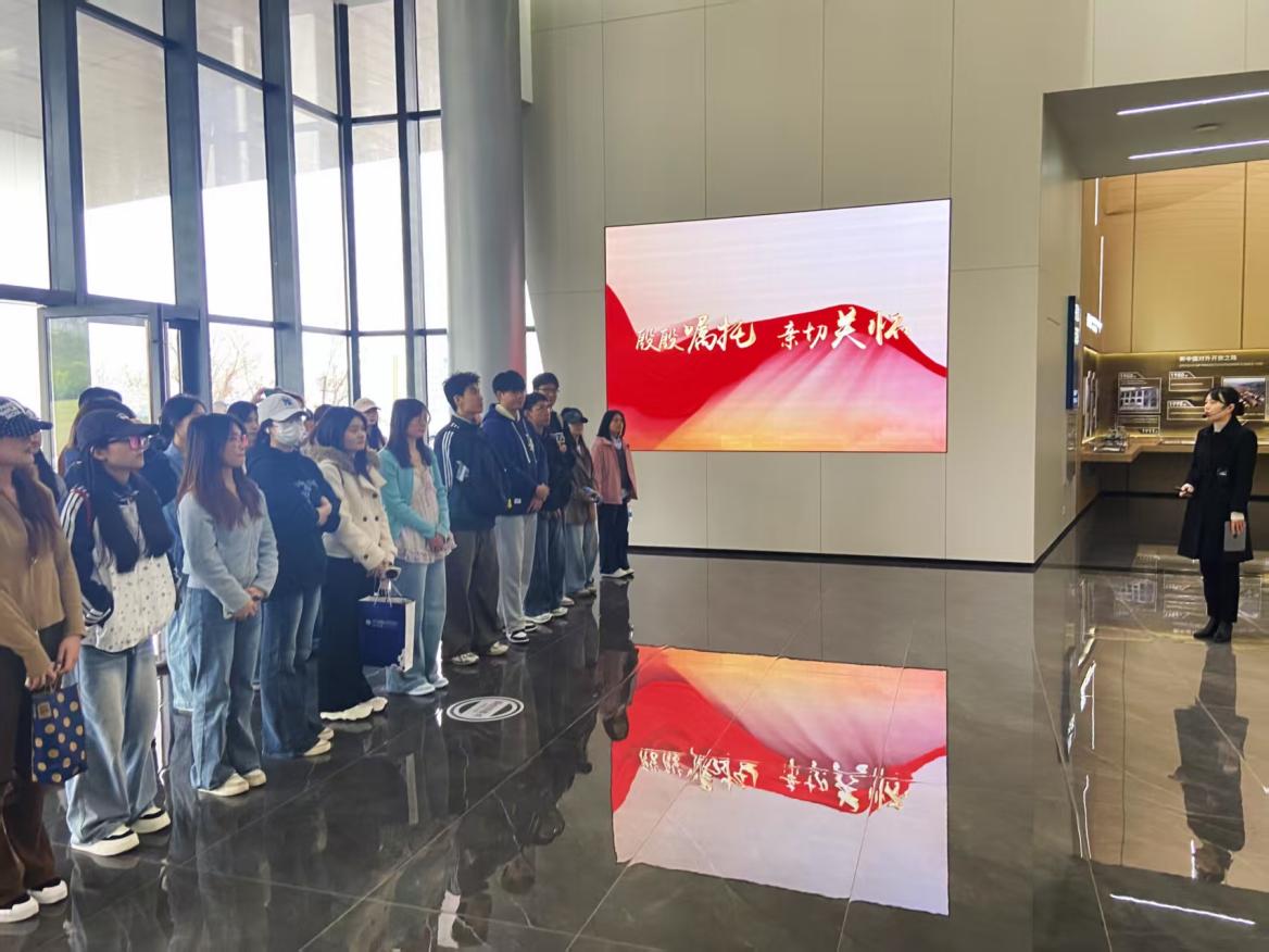 在园区讲解员的带领下,师生们先后参观了国际贸易单一窗口数据中心、五大国家物流枢纽展示区及国际通道规划展厅。在智能通关大屏前,学生们了解到重庆通过“单一窗口”实现通关效率优化、物流环节协同的实践成果;在枢纽展示区,同学们重点学习了生产服务型、空港型等五大枢纽的功能定位。