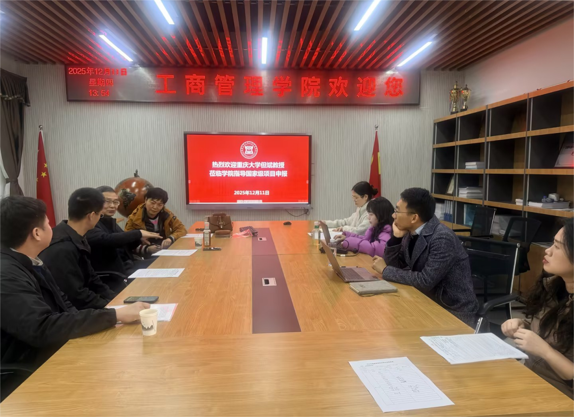 为提升我院国家两金项目申报质量,助力教师精准把握申报要点,12月11日,重庆大学但斌教授应学院邀请来校指导国家两金项目申报。工商管理学院副院长邱继勤教授以及学院拟申报2026年国家级项目的部分老师参加了此次会议。